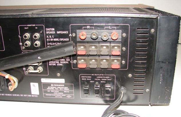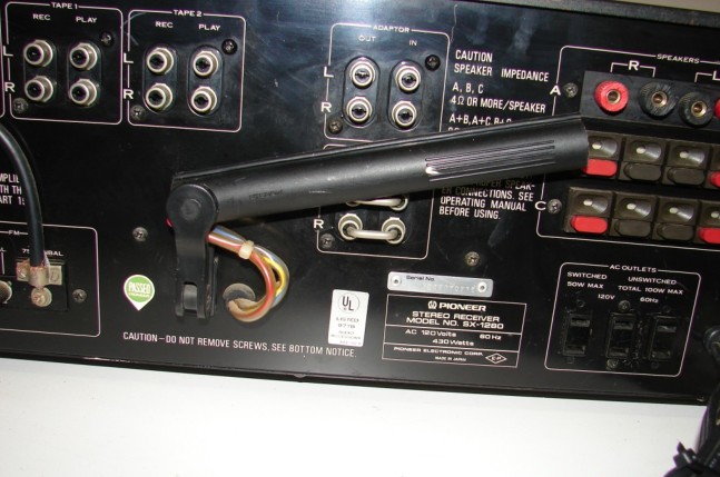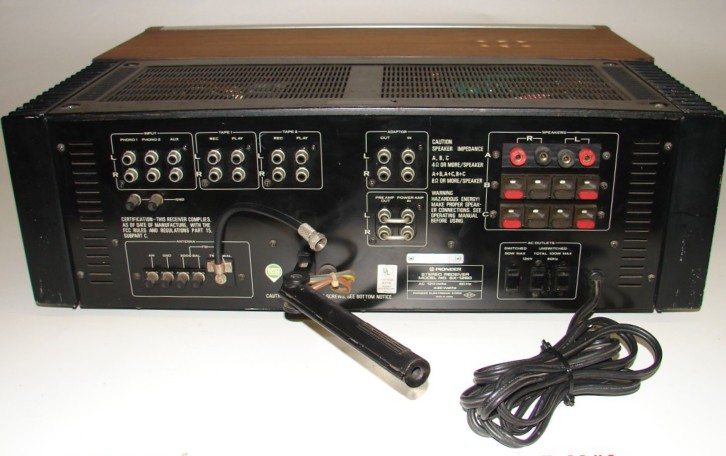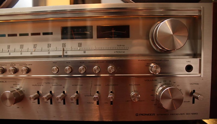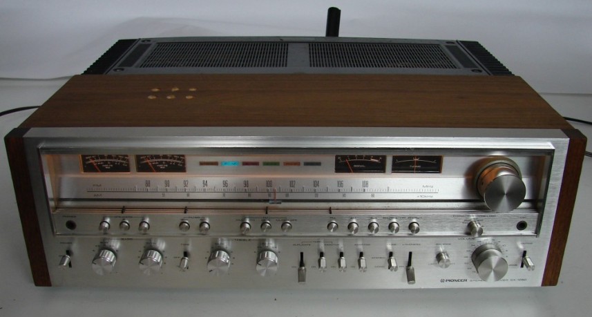 Pioneer AM/FM stereo receiver model SX-1280. Rated at 185 watts per channel. From 1978. Features, tone controls, on/off two separate bass and treble controls, filters, mic input, two tape in/outputs one aux input and two phono inputs, phono two selector is also the mic selector. Tape duplicator switch, phono selector for the right stylus and the best response, from your needle, Adaptor switch to add a equalizer etc. FM muting, FM multipath. Also features both tuning and signal meters, also both right and left channel power meters, which shows the watts the stereo is putting out.