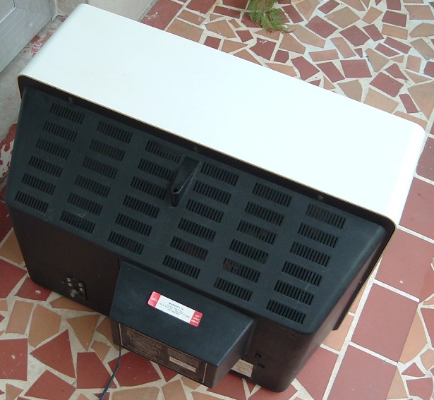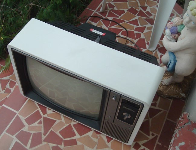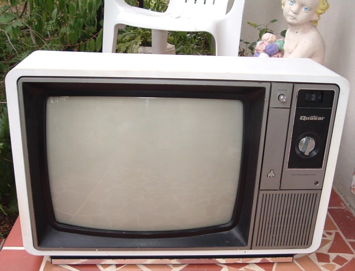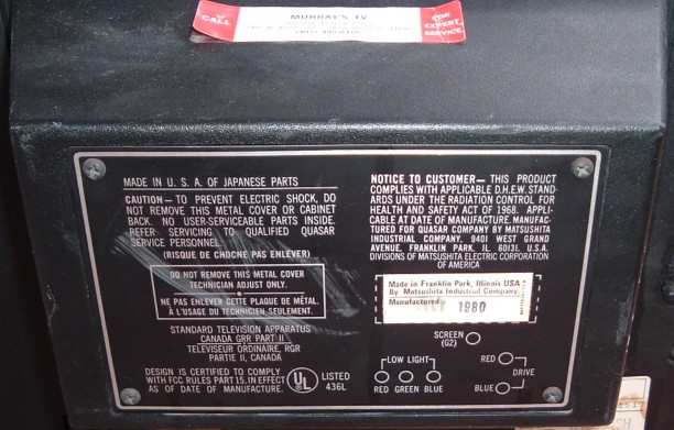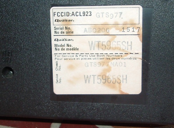Quasar 19 inch television set model WT5965SH. Manufacturer date is the year 1980. Chassis number is GTS977NA01. The bulb that lights the channel rotator display blinks as most all these old Sylvania and Quasar TV sets do. Neat vintage TV set!